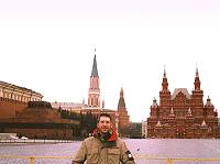 On top of the Lenin-hills, we take a quick look on the metropolis below. After that, we visit the legendary Mosfilm Studios and meet Artemiy’s father Edward, who lives with his wife in a guarded block using two apartments, one for living, one for his recording studio. We feel honoured to meet such a famous man. His electronic studio is equipped with the latest Hi-Tech and a number of the best synthesizers. Edward is a very friendly man with a great sense of humour. We chat and talk shop, and are astonished to have a sixty-five-year-old man in front of us. I have never met someone in that age, which knows such a lot about modern recording and music equipment like Edward. Slightly drunken by the inevitable vine and vodka, we say good-bye after several hours. Artemiy takes us back to the hotel. Thank you, Artemiy, for all the lasting impressions! Steve and I are in a very good mood and visit the club “16 Tons” to eat something. Tomorrow, we have to get up early. Written by Harald Grosskopf, March 2003 Translated by Marcel Vogel, May 2003